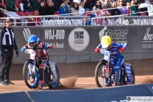 Również w biegu młodzieżowym lepsi na 4:2 byli ostrowianie. W biegu 4 na pierwszym łuku był kontakt pomiędzy Buszkiewiczem i Rowe i zawodnik gości zanotował defekt. Został wykluczony z powtórki. W powtórce ostrowianie lepiej wyszli ze startu i prowadzili 5:1.Anderson nie odpuścił i wyprzedził Sitka. Tym samym bieg zakończył się 4:2 i po pierwszej serii było 15:9.