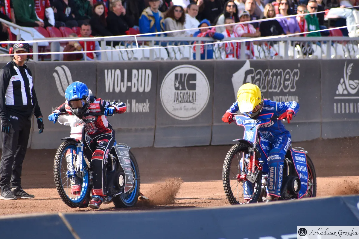 Kolejna cztery biegi to wymiana ciosów i dwa podwójne zwycięstwa ostrowian oraz dwa gości. Po kolejnych remisach, po trzeciej serii startów było 33:27.